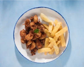 280g Kingklip fillet grilled in olive oil & butter, served with our Nikos spicy sauce, lemon butter & crispy potato chips.
